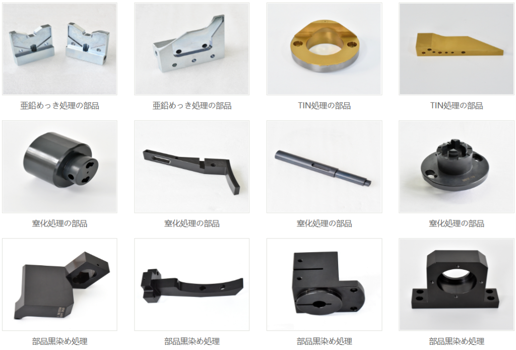 亜鉛・クロム・ニッケルメッキ/TIN処理/黒染め/窒化/浸炭・高周波焼入れ/アルマイト/溶射 など